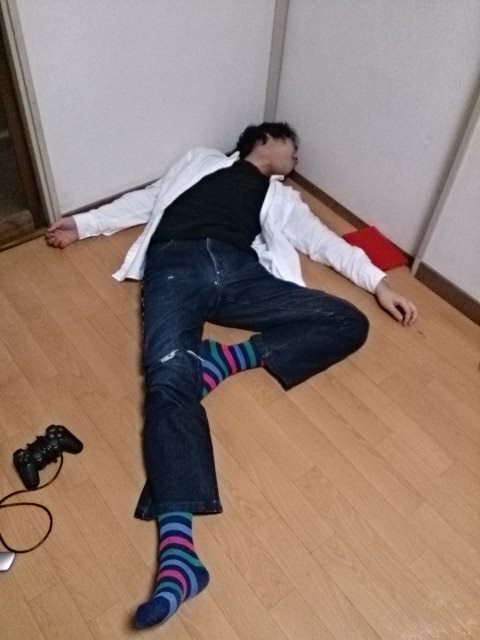 と、酔いと興奮で限界に達したかヤツが倒れこみました。